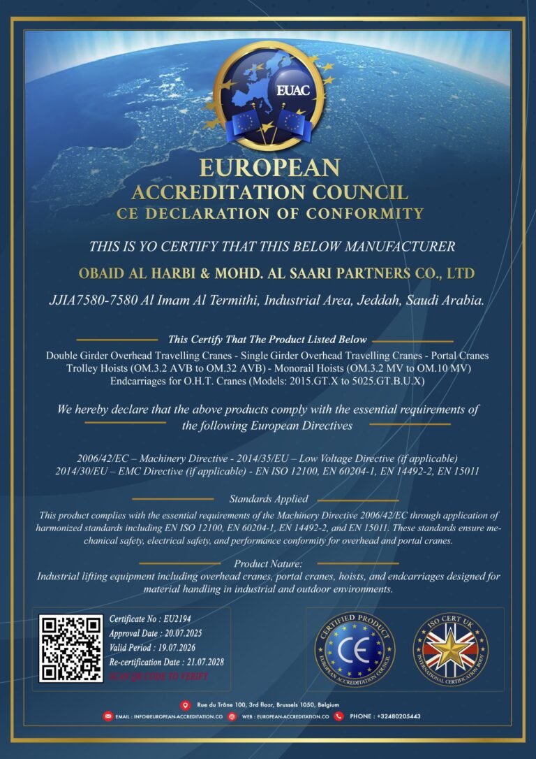 OM Crane Systems is the brand name of OM Steel Company. The company was established in 1986. Our goal is to be one of the leading companies in designing and installing crane systems in the Middle East. Our focus is to design high-quality cranes with well-known brand components. Safety is our priority throughout our company.
